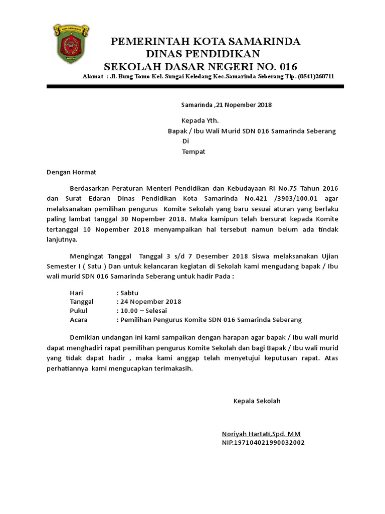 Organisasi komite sekolah berfungsi sebagai mitra sekolah untuk meningkatkan kualitas manajemen sekolah. Contoh surat pengantar permohonan pembuatan no npsn sekolah kop bem smp negeri 157 jakarta: Keberadaan komite sekolah memegang peran yang sangat penting. Sesuai dengan namanya, kop surat berisi tentang informasi mengenai identitas instansi. Contoh surat undangan dinas kepada komite sekolah 15 soal bahasa indonesia kelas xii smk ktsp kop gawe cv ujian dunia sosial kurikulum 2013 revisi 2016 matematika sma sobat guru. Berdasarkan peraturan menteri pendidikan dan kebudayaan nomor 75 tahun 2016 tentang komite sekolah, ada 4 tugas dari komite sekolah. 37 contoh surat undangan osis perusahaan sekolah rt dan desa. Bahwa dalam rangka menjamin kelancaran tugas kepala sekolah yang berhubungan dengan masyarakat/orang tua/dinas instansi, perlu membentuk/mengukuhkan pengurus komite sekolah. Peraturan menteri pendidikan dan kebudayaan republik indonesia nomor 75 tahun 2016 tentang komite sekolah Mengetahui hormat kami, kepala sekolah, ketua komite sekolah, (nama lengkap dan ttd) (nama lengkap) nip. Semoga dapat memberikan manfaat yang berharga bagi. Kop surat ditempatkan di bagian atas surat. Contoh kop surat resmi sekolah charlottemust.